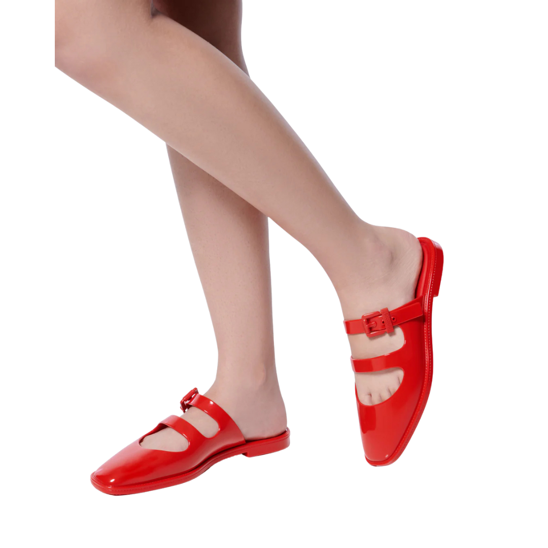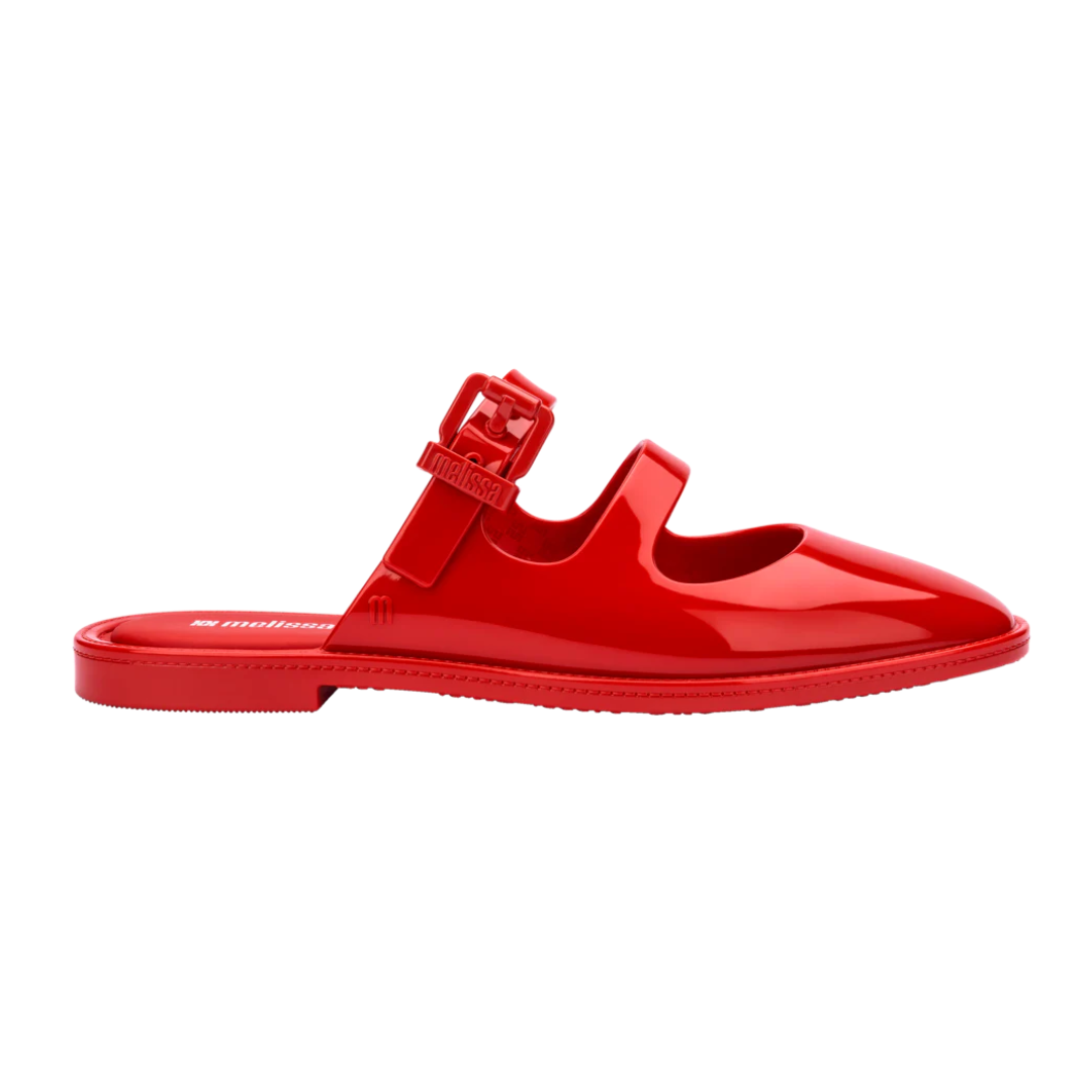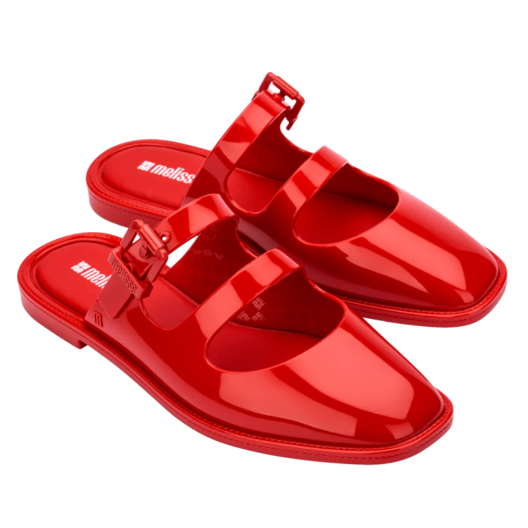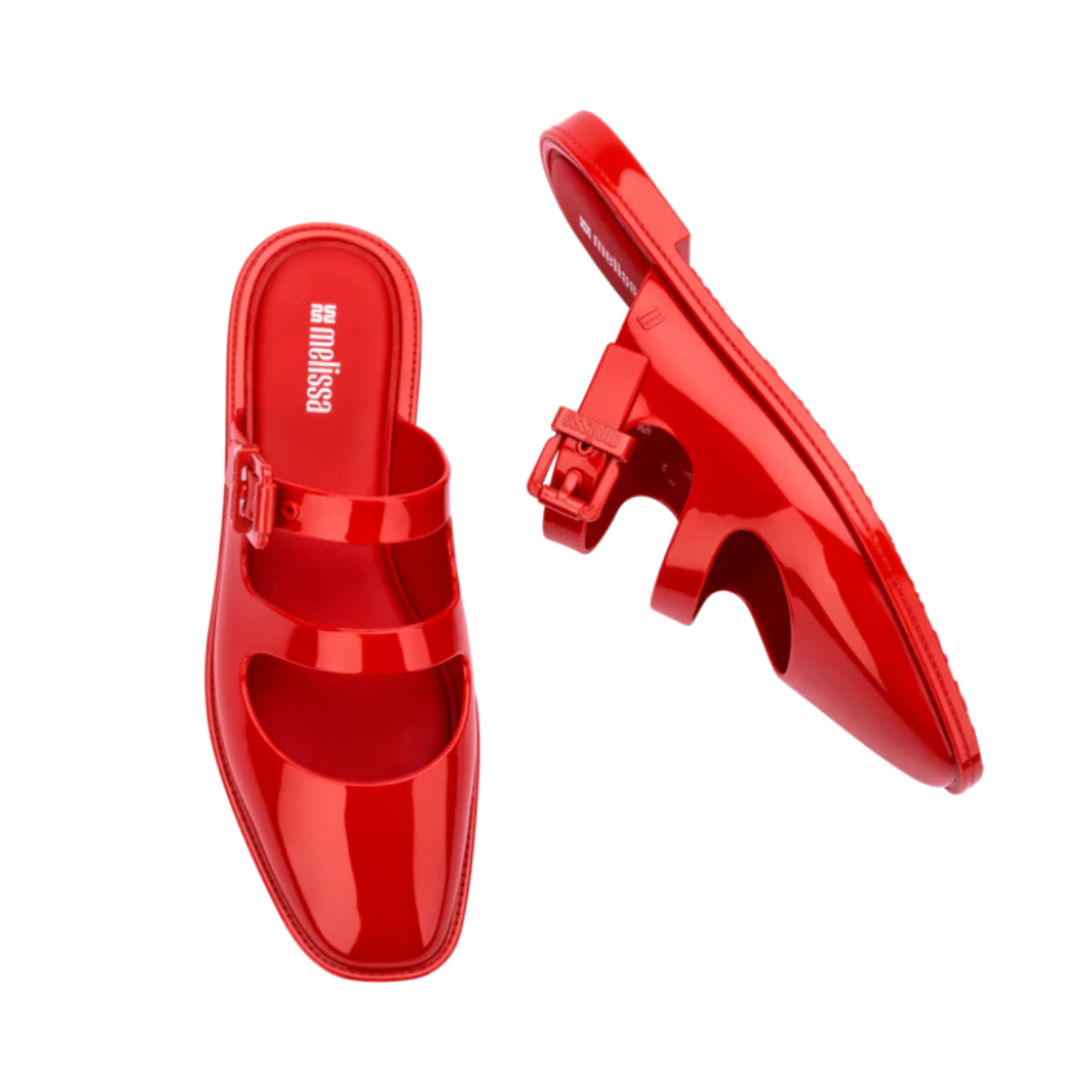 The Melissa Anastasia is a blend of style and comfort. Combining the business core trend with Melissa's DNA, it radiates attitude and elegance! The square toe adds a modern touch to the classic mule, while the straps across the instep bring a feminine flair to the design. It features a functional buckle that showcases the Melissa signature, adding a sense of modernity and practicality. Comfort is ensured with a soft foam insole, making it super lightweight and perfect for everyday wear.
