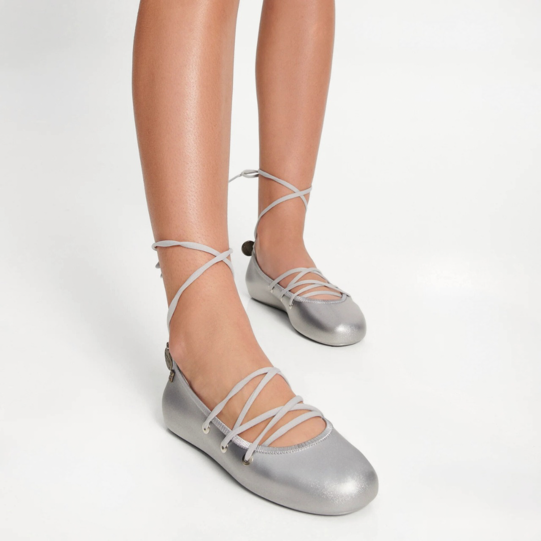 The not-so-basic ballerina you didn’t know you needed: the Melissa Beta is made from Melflex®, a lightweight and flexible material that guarantees comfort and style all day long. With lace-up ties that wrap around the ankle and an exclusive metallic charm at the back, it blends personality and modernity in a single shoe. Perfect to follow your steps—from a walk in the park to meeting friends, from work to a stylish coffee date. The Melissa Beta women’s ballerina is versatile and transforms any look into a statement full of attitude.
