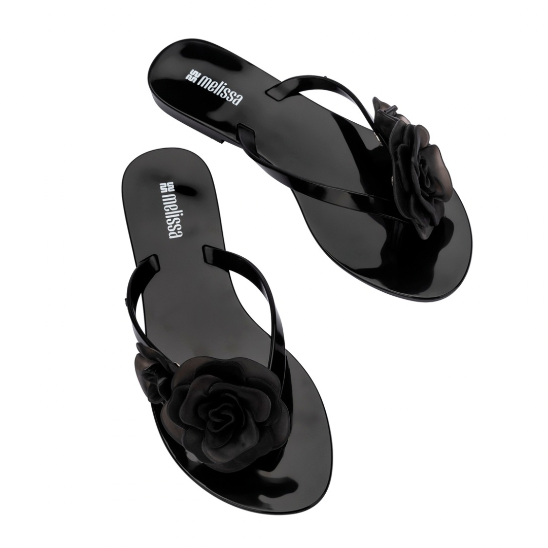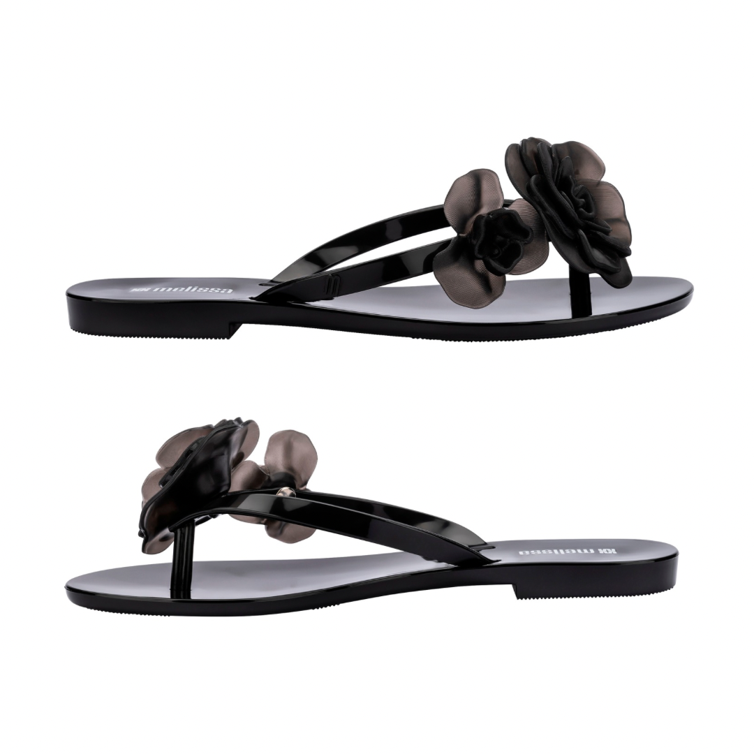 The Melissa Harmonic Petals AD is a slip-on thong sandal featuring a feminine floral appliqué detail on the strap. This style showcases Melissa's commitment to playful, nature-inspired design combined with the brand's signature comfort.