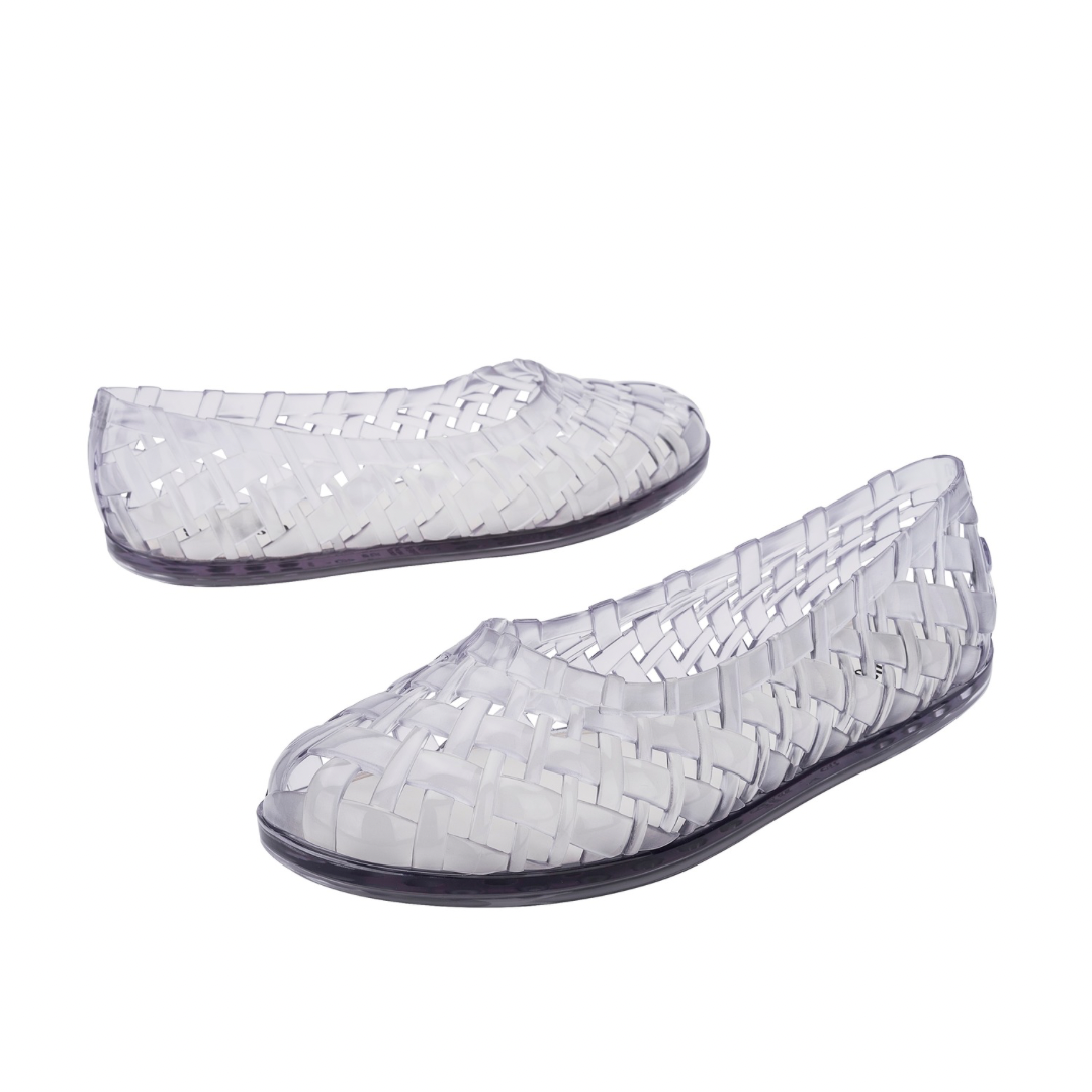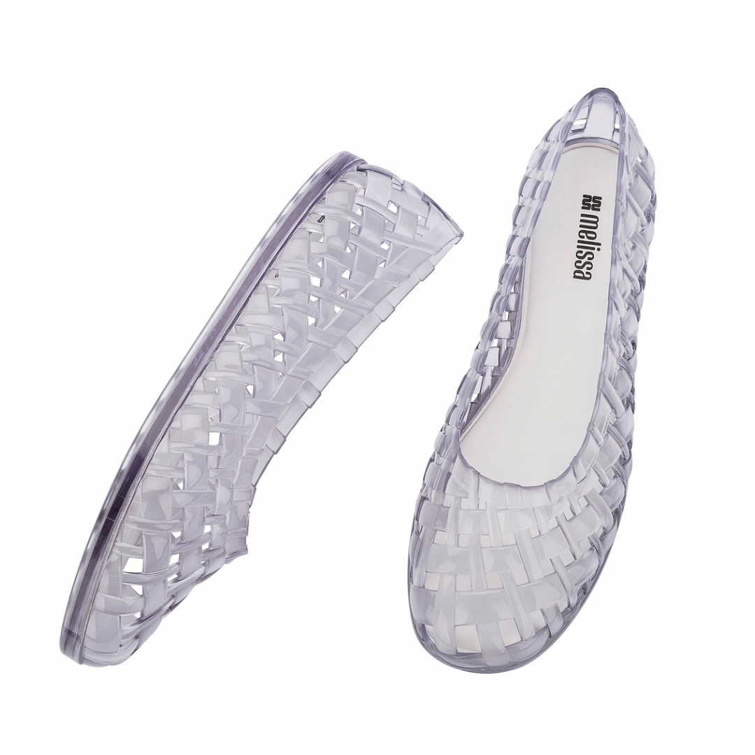 Balletcore has arrived! Are you a black swan or a white swan? The Melissa Possession Ballerina brings the brand’s essence by reinterpreting the iconic weave of the classic Melissa Possession, applied to a ballet flat design that stands out as a major fashion trend.  Single-piece in Melflex PVC; Insole in soft foam.