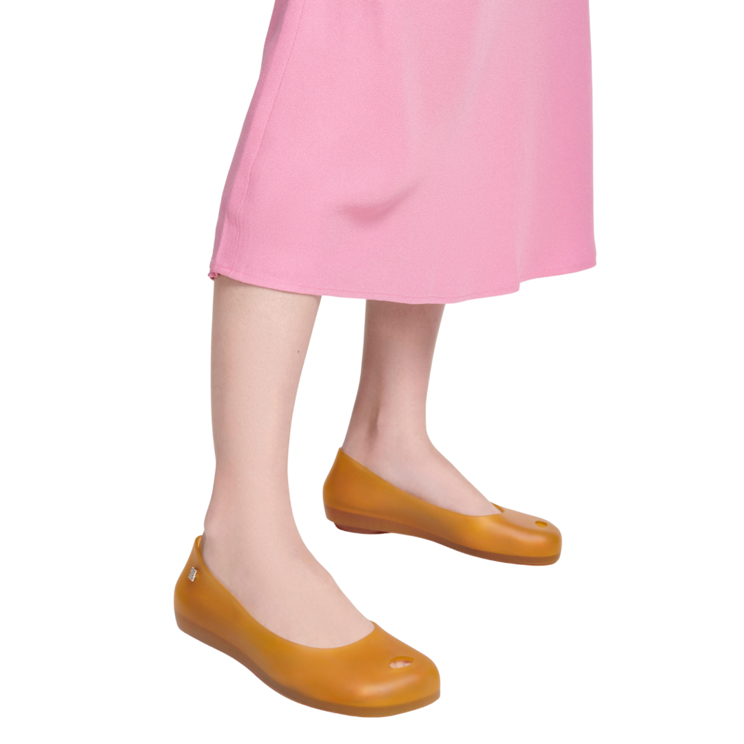 The Melissa Ultragirl Futura ballet flat is the classic Ultragirl revisited, inspired by the barefoot movement and tabis. What about combining freedom and protection for the feet? That's what Ultragirl Futura does. Its minimalist and flexible design mimics the feeling of walking barefoot and allows a more natural movement. Respecting the foot's anatomy, the separation of the big toe, characteristic of tabis, offers greater comfort and stability. Ideal for those seeking a lightweight and functional shoe that promotes posture and strengthens foot muscles without compromising style and practicality. Upper: single-piece Full Plastic PVC; Insole: Grenflex with screen printing and frequency.