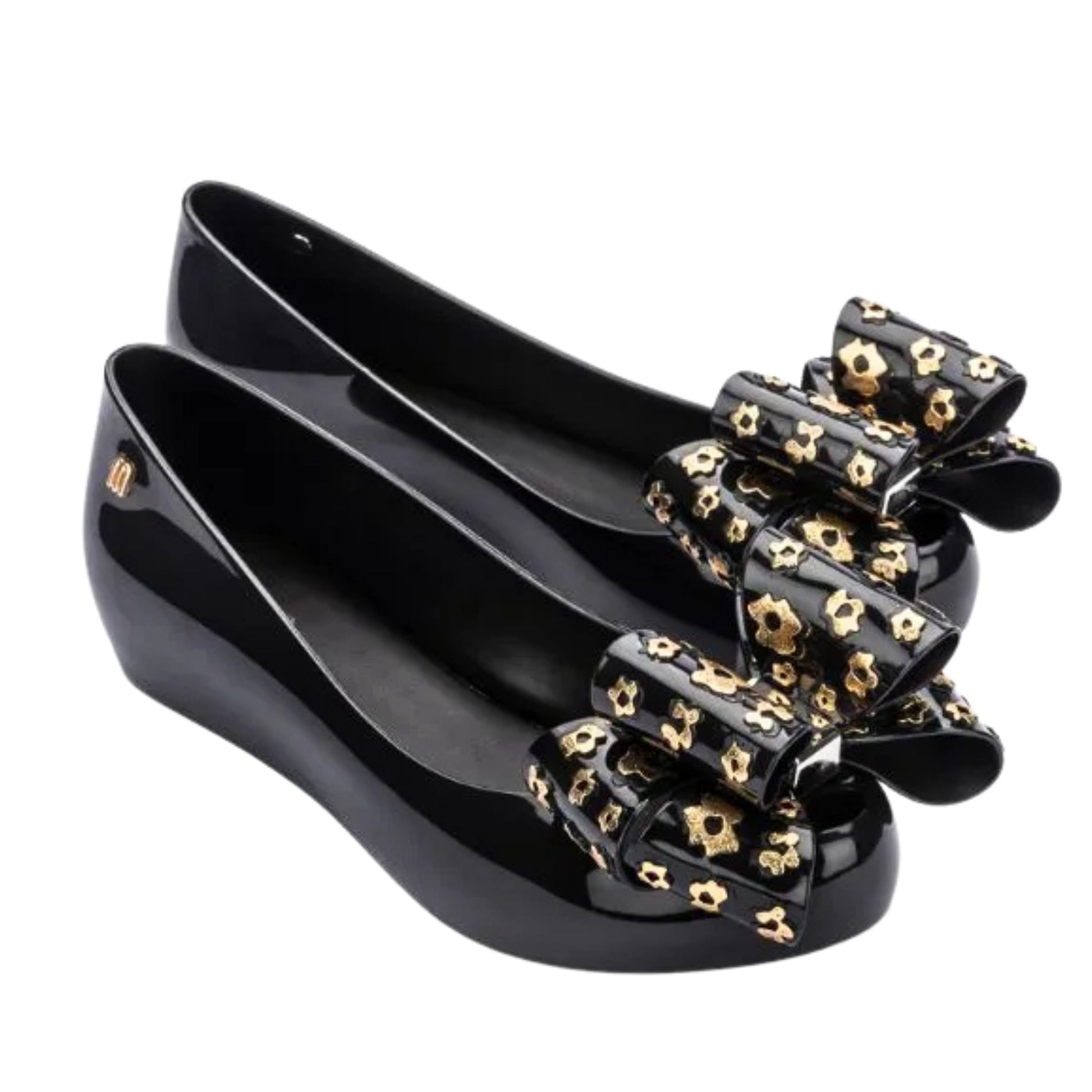 The Melissa Ultragirl Sweet XXII AD are women's flats made from Melflex, a special type of PVC developed by Melissa. These shoes are known for their elegance, distinctive scent, and are made from 100% recyclable, animal-free materials.