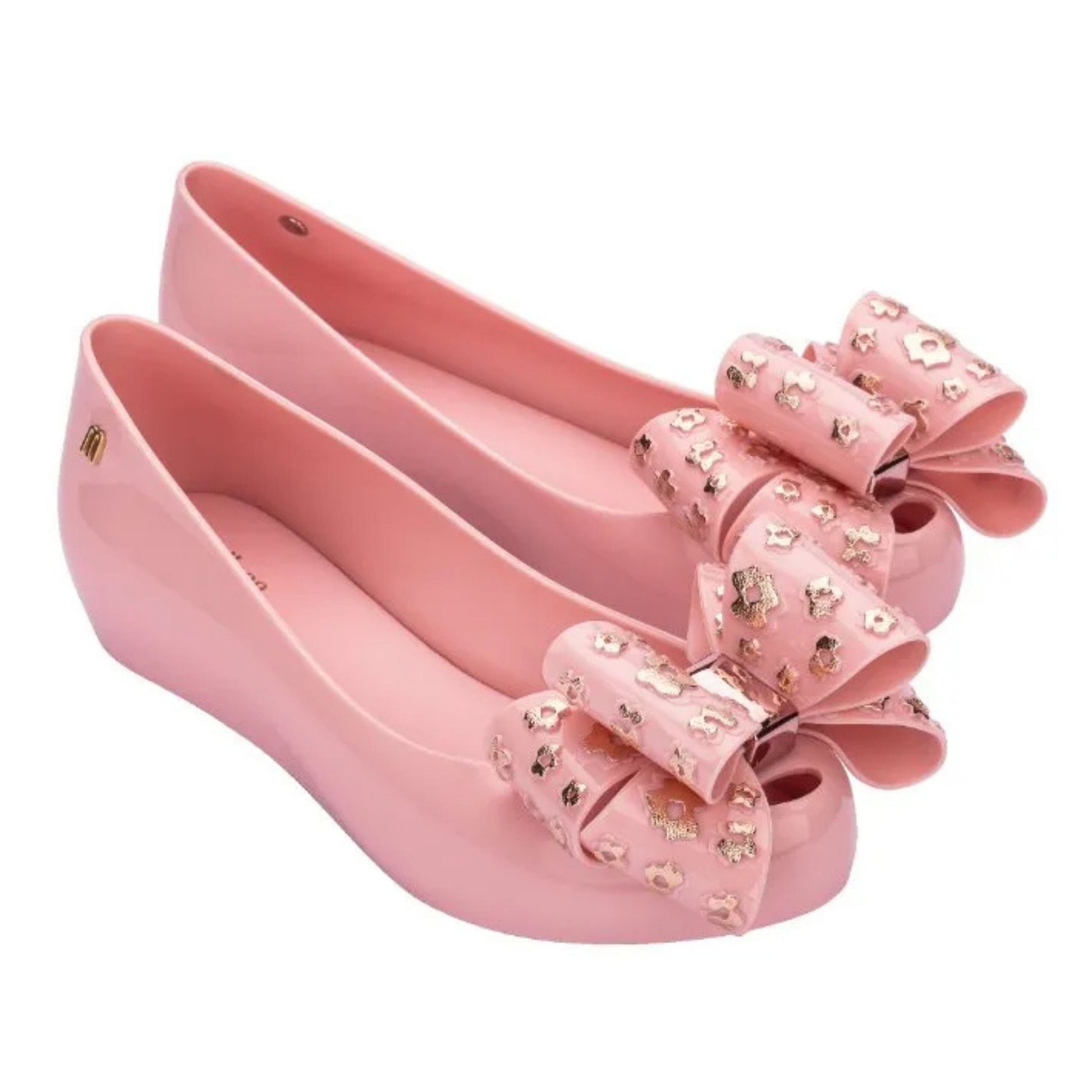 The Melissa Ultragirl Sweet XXII AD are women's flats made from Melflex, a special type of PVC developed by Melissa. These shoes are known for their elegance, distinctive scent, and are made from 100% recyclable, animal-free materials.