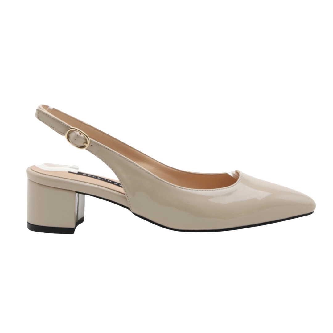 Add some charm to your everyday life with these delightful slingback heels. With a pointed toe and glossy patent leather in a range of colors, they effortlessly complement any outfit. The addition of a beautiful gold adjustable buckle on the back strap ensures a personalized and secure fit. These versatile shoes are perfect for any occasion.