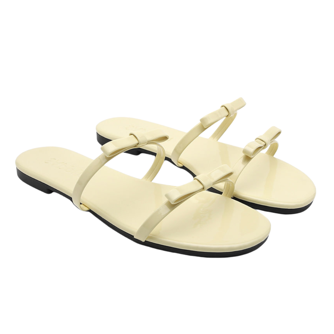 Our beloved ‘TERROSHOE’ has been newly released with a lovely twist. Made with a glossy patent material, adorned with charming bow details, and available in a variety of colors, these comfortable and playful slides are the perfect addition to your summer look.
