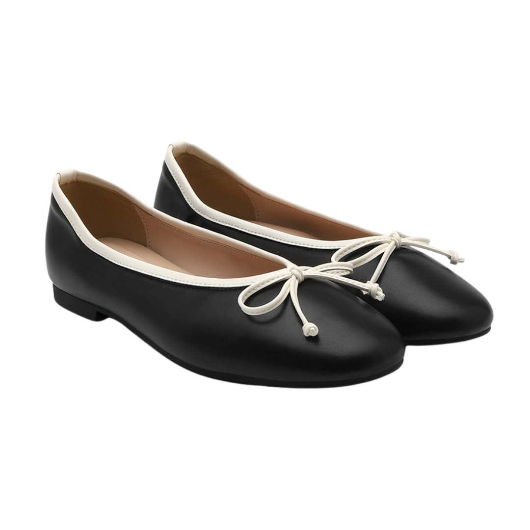 The three-dimensional ribbon detail and the harmony of the two-tone color that gives a good point show an attractive silhouette, and it provides a light step with a flexible and comfortable touch.