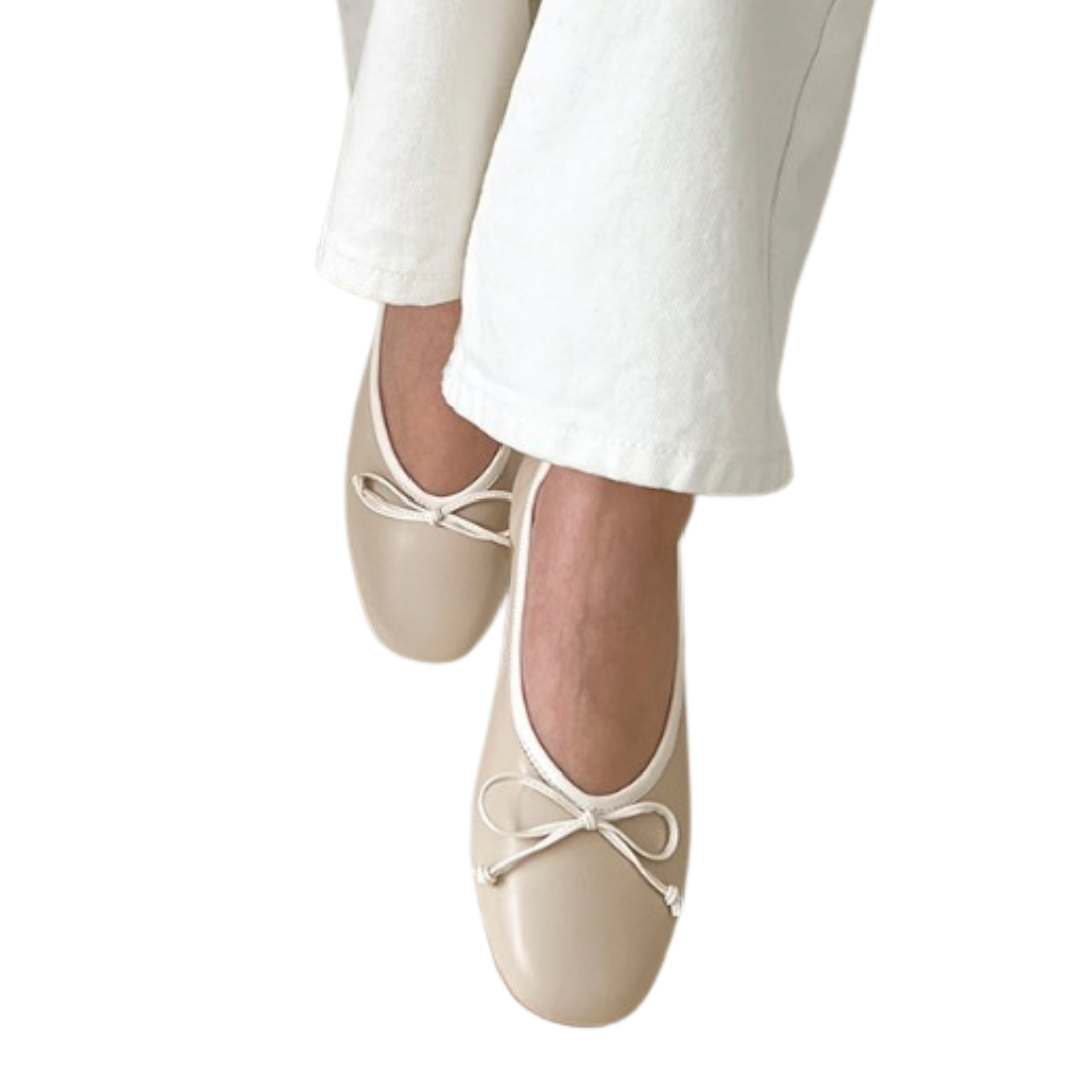 The three-dimensional ribbon detail and the harmony of the two-tone color that gives a good point show an attractive silhouette, and it provides a light step with a flexible and comfortable touch.