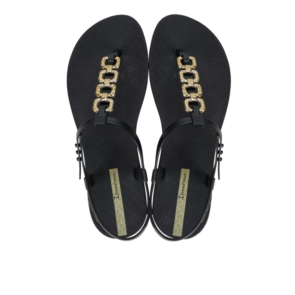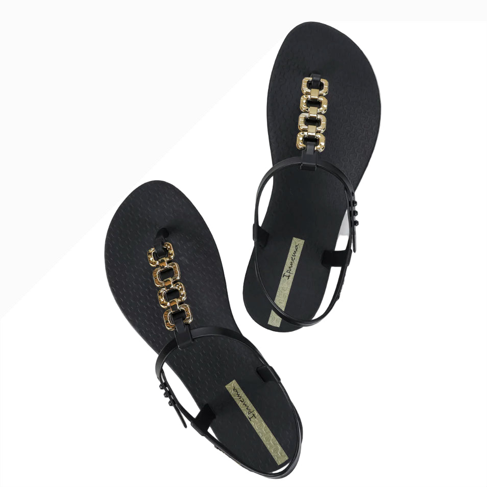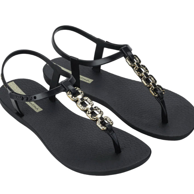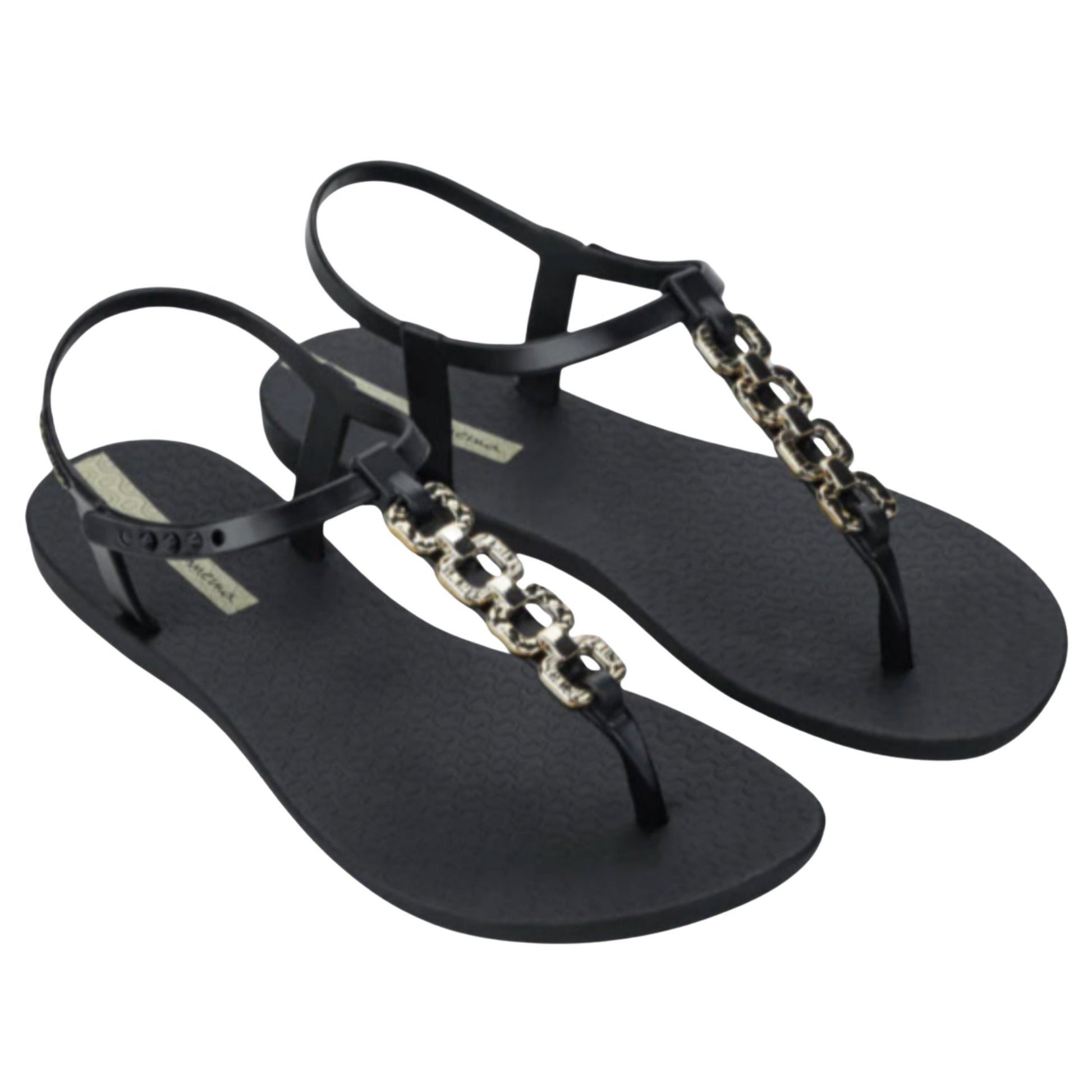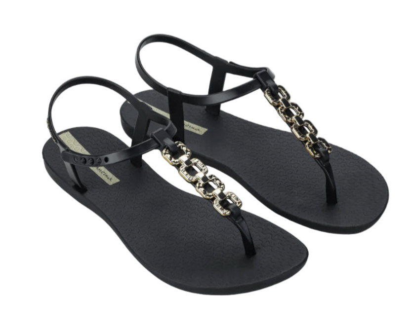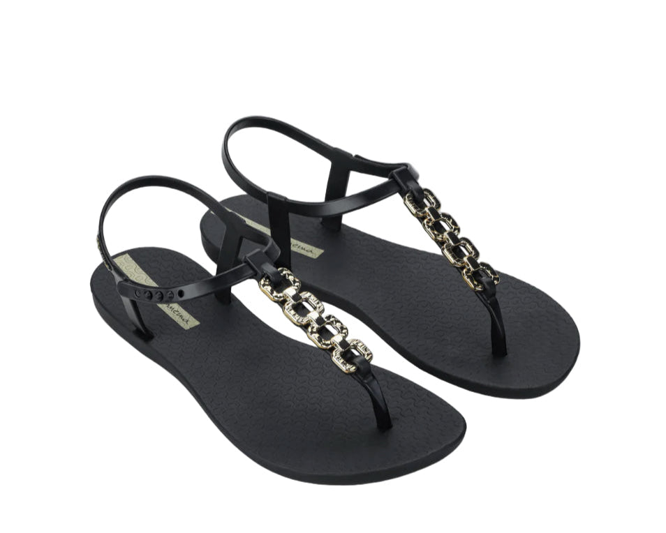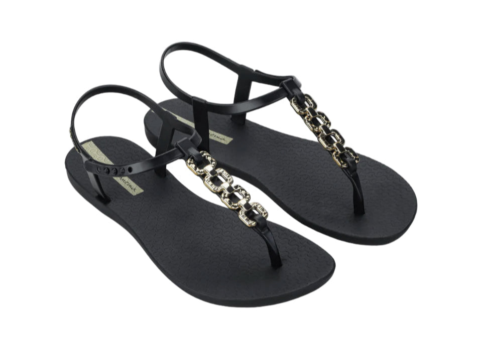the ipanema class forever fem is an updated version of the classic t-strap sandal, incorporating the popular chain trend. with a variety of finishes and textures, this sandal offers a touch of sophistication to any outfit. perfect for those who want to stay on-trend and add a touch of luxury to their look.