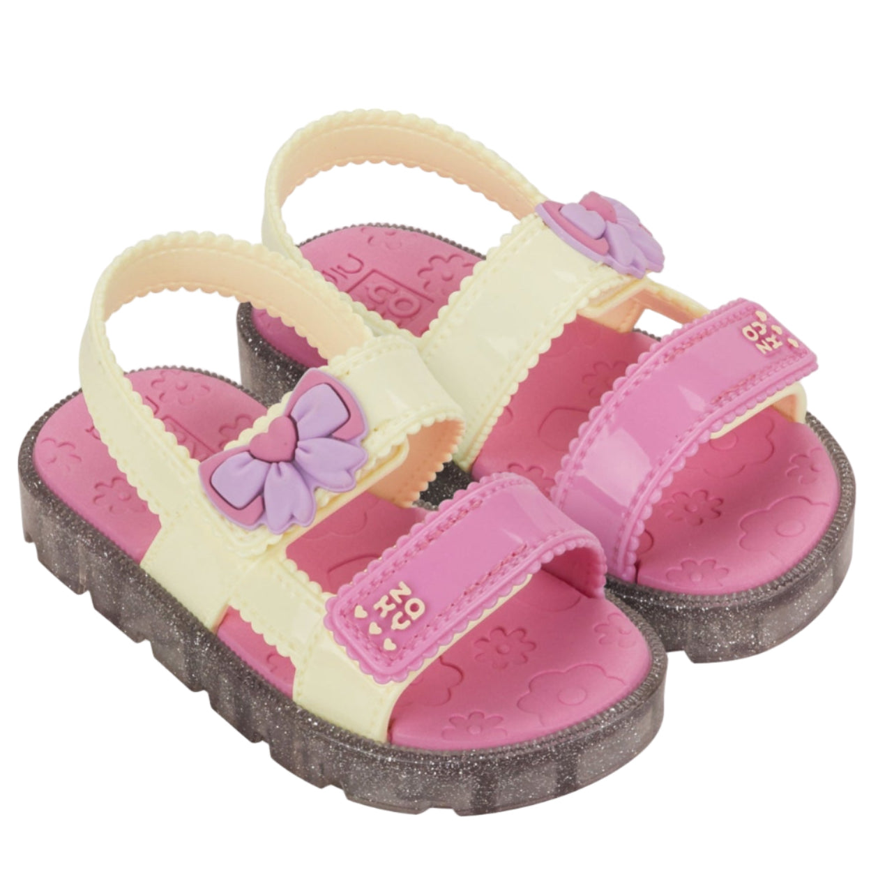 Zaxy Nina's sandals are even cuter than ever! With straps that simulate delicate ruffles, the model gains even more charm with labels decorated with berries or bows, bringing a playful and fun touch. The color palette features sweet combinations, translucent effects and lots of glitter for a look full of magic!